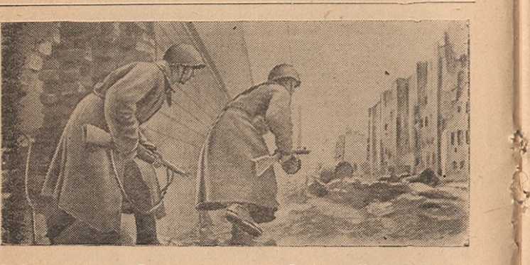В Сталинграде. Гвардии красноармейцы Стасенко и Новиков в разведке , одного из кварталов города.