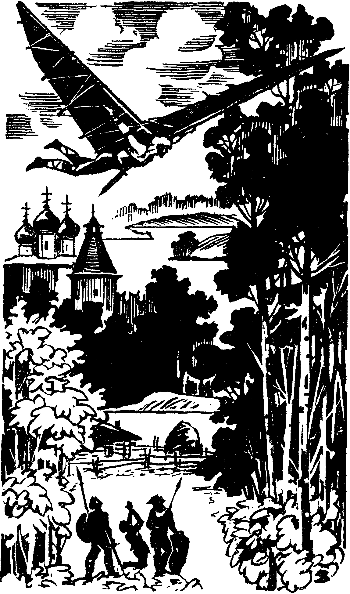 Если бы теперь у Крашенинникова спросили, как дальше развивались события, он честно сказал бы: «Не могу вспомнить». Все происходило словно во сне. Смутно виделось, как вдевал он руки в лямки, как архимандрит перекрестил и благословил его на «полет неслыханный во славу божью», как Андрей подтолкнул сооружение… И вдруг Иван почувствовал, что летит! Летит точь–в–точь как птица.
