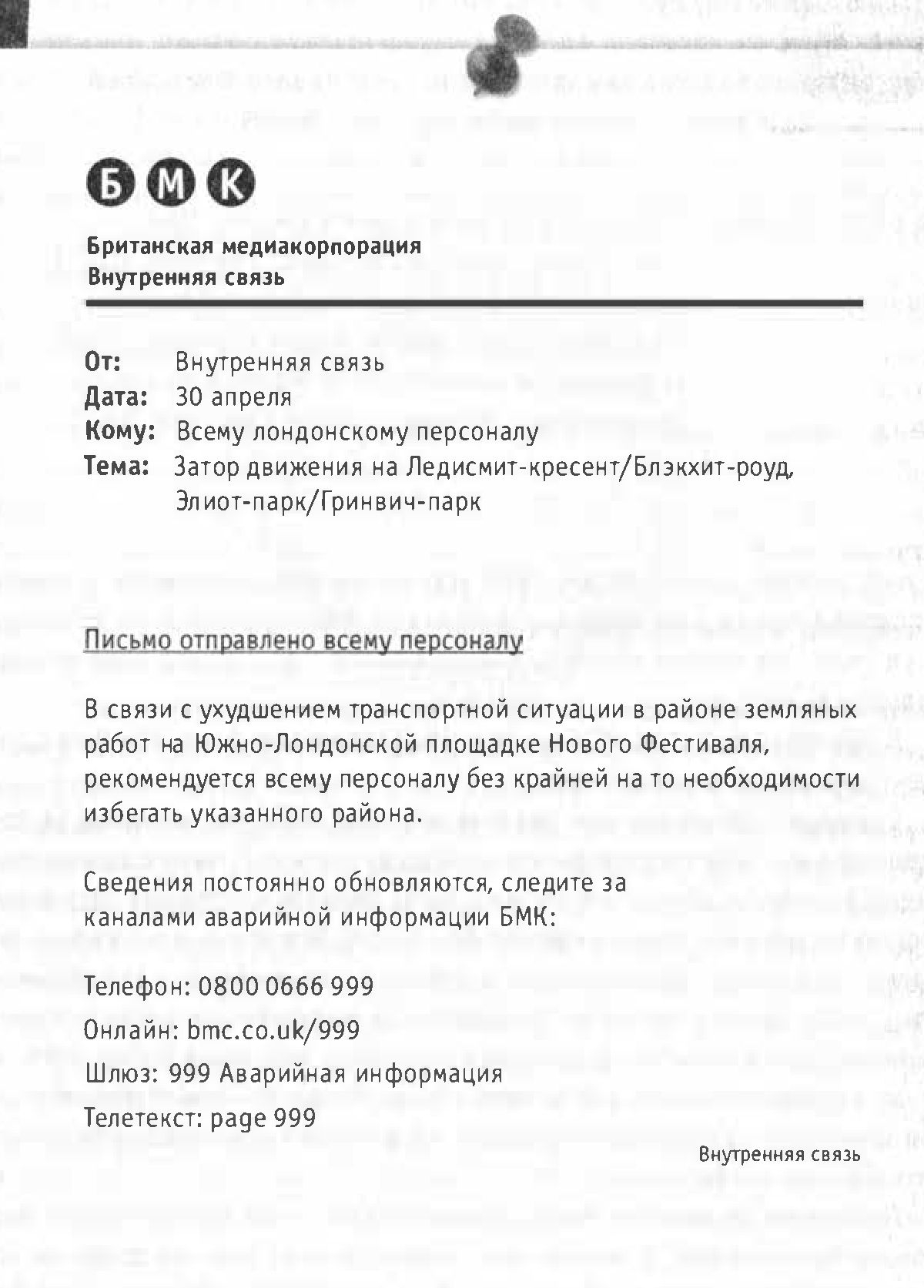 «БМК» внутренняя связь (От:, До:, Тема: и т.д. – см. снимок):
