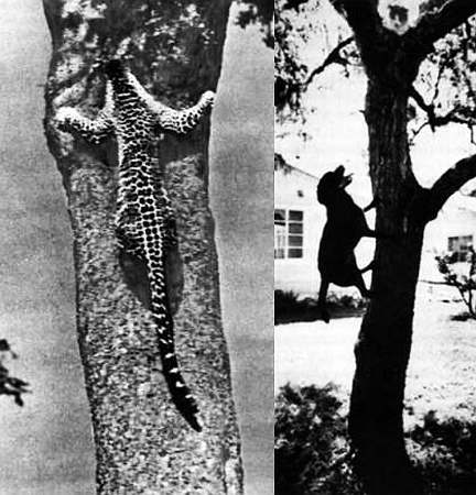 Великолепный лазальщик по деревьям — наша лесная рысь. Ну и у всех на глазах домашняя кошка. Куда метнется она от собаки? Конечно, на дерево. И смотрите, с каким олимпийским спокойствием взирает сверху она на собаку, вполне понимая: сколько враг ни старается, влезть на дерево ему не дано.