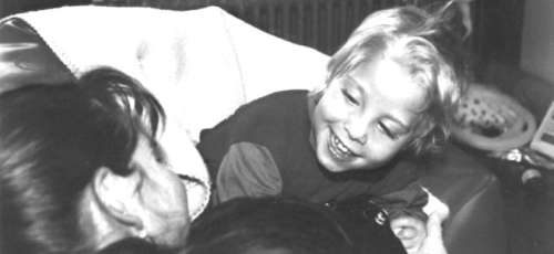 При игре помогает U-образная подушка. С ее помощью мать сдерживает тенденцию к разгибанию ног ребенка, в то время как он опирается на одну руку, а другой тянется к игрушке (рис. 4.1).