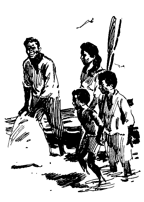 Ребята насадили весь улов на острогу, взяли ее на плечи. Прыгая с камня на камень, мы отправились к стоянке. Возле хижины братья разыграли перед родителями целое представление, изображая охоту на осьминогов. По тому, как они часто выкрикивали мое имя и тыкали в меня пальцами, я понял, что они сверх меры превозносят меня, как выдающегося охотника за осьминогами. Тави упал на песок и, весь извиваясь, стал изображать мою борьбу с осьминогом. Выходило, что я разделался с ним еще под водой. Ронго прыгал вокруг и выкрикивал недостающие пояснения.