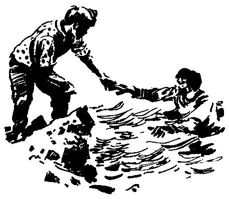 Мы очень удобно устроились за глыбой. Я удивился беззаботности своих друзей. Сахоно уже улыбался, рассказывая что-то смешное, а жена и сыновья покатывались со смеху. Затем они обратились ко мне. Я понял, что они успокаивают меня, говорят, что такого человека, как Ласковый Питер, мне бояться не следует, а наказан, наверное, очень плохой человек. В конце концов улыбнулся и я, чем вызвал общий взрыв восторга.