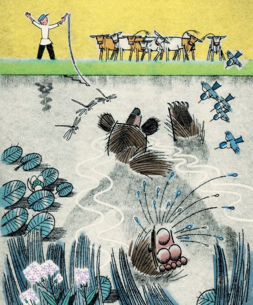«Неужто не переплыву? – сомневался медведь. – Да нет, пожалуй, переплыву. Мой дед, говорят, Волгу переплывал и то не боялся».