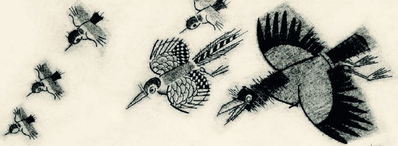 Подплыл медведь к берегу, полез на крутояр к телятам, облизывается. Петя оглянулся, крикнул: «Подсобите!» – и видит: задрожали все осины и ивы, и все птицы поднялись к небу. «Неужто все испугались и никто мне теперь не поможет?» – подумал Петя.