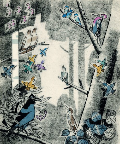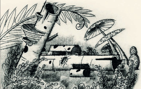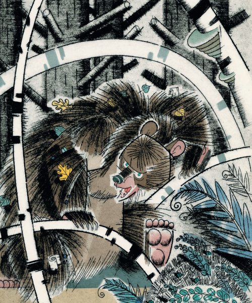 Когда приходил медведь, птицы начинали отчаянно хлопать крыльями, деревья – шуметь, рыбы – бить хвостами по воде, шмели – грозно гудеть, даже лягушки подымали такой крик, что медведь зажимал уши лапами и мотал головой.