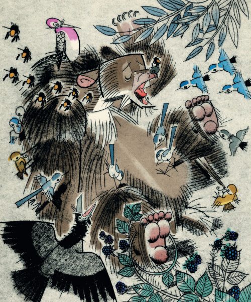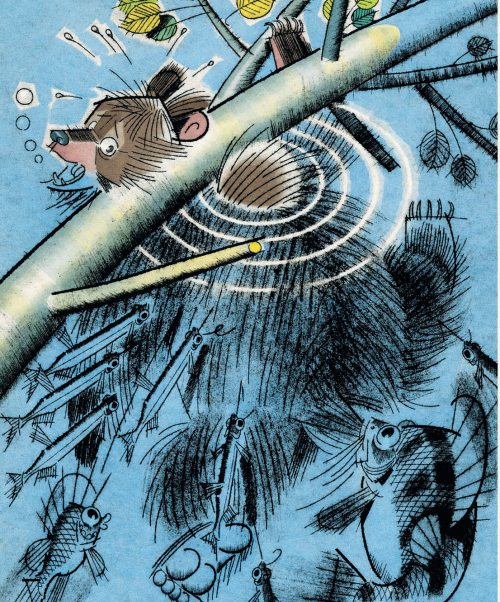 Вылез на свой берег и – где там отряхиваться, некогда! – пустился бежать по песку к своему лесу. А позади крик, улюлюканье. Бобры свищут в два пальца. А ворона так задохнулась от хохота, что один только раз и прокричала: «Дурак», а больше уже и кричать не могла. Осинки мелко тряслись от смеха, а ёрш Шипояд разогнался, выскочил из воды и лихо плюнул вслед медведю, да не доплюнул – где там доплюнуть при таком отчаянном беге!