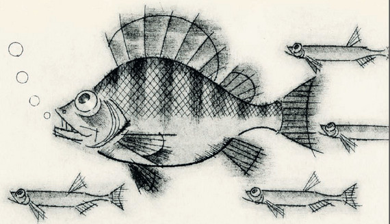 Только хотел медведь пообещать окуню кувшин липового мёда, как самый драчливый ёрш на Высокой реке, по имени Шипояд, разогнался, налетел на медведя и засадил ему в бок свой ядовитый и острый шип. Рванулся медведь, хвост оторвался, остался у окуня в зубах. А медведь нырнул, выплыл и пошёл махать саженками к своему берегу.