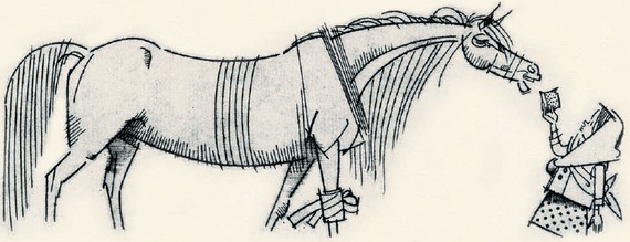 Панкрату трудно было прокормить коня, и конь начал ходить по дворам побираться. Постоит, пофыркает, постучит мордой в калитку, и, глядишь, ему вынесут свекольной ботвы, или чёрствого хлеба, или, случалось даже, сладкую морковку. По деревне говорили, что конь ничей, а вернее, общественный, и каждый считал своей обязанностью его покормить. К тому же конь – раненый, пострадал от врага.