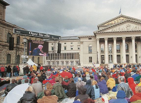 Кульминация и завершение каждого оперного сезона – оперный фестиваль в июле. Наибольшей популярностью при этом пользуется ряд постановок «Опера для всех». На протяжении двух вечеров каждый совершенно бесплатно может присутствовать на представлениях: в первый вечер на аудиовизуальной трансляции непосредственно из оперного театра на площади Макса Йозефа, а во второй вечер – на живом концерте Баварского государственного оркестра на Марштальплац.