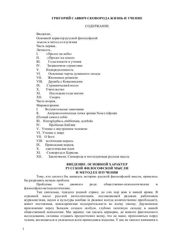 ГРИГОРИЙ САВВИЧ СКОВОРОДА ЖИЗНЬ И УЧЕНИЕ