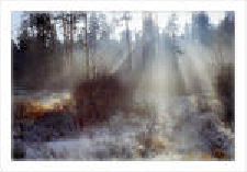Зима с коня слезает, встает на ноги, кует седые морозы, стелет по рекам- озерам ледяные мосты, сыплет из одного рукава снег, а из другого иней.