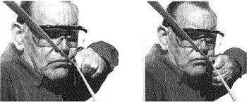 Раньше в течение многих лет я располагал якорную точку на скуле. Но недавно я получил по лицу оборвавшимся неожиданно тяжем и решил перенести ее к уголку рта. На некоторое время моя меткость от этого пострадала, но сейчас я рад перемене. Дело в том, что некоторые очки для стрельбы довольно большие и перекрывают якорную точку. Если большой палец касается очков, можно случайно моргнуть, потому что глаз реагирует на движение очков. Если так происходит, поменяйте ваши очки на такие, которые не будут перекрывать якорную точку. Помните, что оборудование никогда не должно влиять на ваш стиль стрельбы.