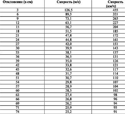 Саму рогатину в этот момент лучше держать вертикально, а не наклоняя, как любят делать некоторые стрелки. Пометьте, насколько ниже центра мишени произошло попадание. Теперь вычислим время полета шара до цели, для этого получившуюся цифру умножим на два и разделим на расстояние от стрелка до мишени. Затем извлекаем квадратный корень из этого числа, это и будет время полета шара. Разделив же расстояние до мишени на время полета шара мы получим его скорость.