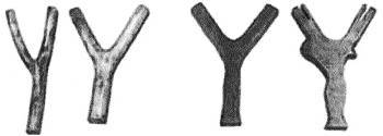 Рисунок 4–2. Две рогатины справа сделаны из веток, а две справа из кленовой доски.