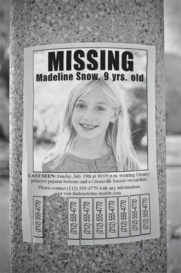 Возле окошка несколько дюжин разноцветных листовок, слоями, словно перья на стекле, рекламирующие разнообразные специальные мероприятия, скидки на спец-предложения и, конечно, юбилей. Новая листовка была недавно добавлена к этому вороху, и она явно выбивалась из общего ряда: зернистая фотография пропавшей девочки, Мэдлен Сноу, щербатое и улыбающееся лицо которой наклонено к камере. Большими печатными буквами над её изображением написано: ПРОПАЛА. Теперь мне кажется, что девушка с белокурым хвостиком, та, которая стояла с полицейскими и показалась знакомой, должна быть связана с Мэдлен Сноу: у них одинаковые широко посаженные глаза и тот же, слегка закругленный подбородок.