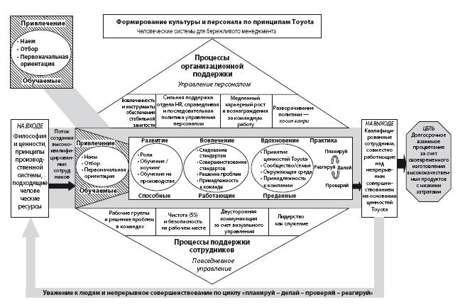 Во второй части рассматривается поток создания ценности ключевых специалистов, причем этот процесс состоит из четырех этапов: привлечение, развитие, включение и воодушевление. Необходимо привлекать людей с нужными качествами, чтобы они могли социализироваться в производственной системе Toyota, они должны быть сформированы как специалисты для выполнения своей работы, они должны быть вовлечены в процесс, чтобы вносить свой вклад в его непрерывное совершенствование, и, наконец, они должны быть вдохновлены, чтобы стать преданными сотрудниками компании и достойными членами общества.