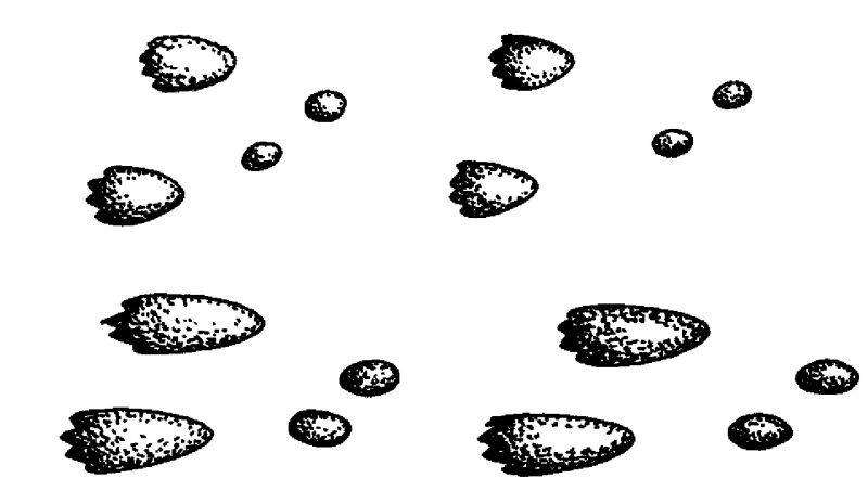 Тропить зайца можно только по свежим следам. Если в углублениях, оставленных заячьими лапами, имеется даже небольшое количество звездочек – снежинок, то идти по такому следу не имеет смысла, так как он уже потерял свою свежесть. Но как определить свежесть следа, если последние несколько дней не было снега? Оказывается, снежные кристаллы в несвежем заячьем следе образуются в любом случае – иней, с пышностью украшающий деревья в бесснежную морозную погоду, оседает и в отпечатках на снегу, поэтому внимательный следопыт всегда отмечает чуть заметные иголочки инея как свидетельство застарелости следа.