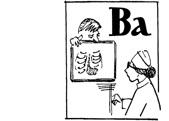 Желудочно-кишечные заболевания приводят иногда больных в кабинет врача-рентгенолога. Для точного распознавания характера болезни при рентгеновских исследованиях желудка больному внутрь вводят бариевую «кашу», состоящую из сернокислого бария. Сернокислый барий без всяких осложнений вводится внутрь в количестве от 50 до 100 г. Являясь нерастворимым, он не усваивается организмом (между прочим, все растворимые соли бария очень ядовиты!). Сернокислый барий задерживает рентгеновские лучи в значительно большей степени, чем мягкие ткани организма. Это позволяет рентгенологам при заполнении бариевой «кашей» полых органов определять в них наличие анатомических изменений.