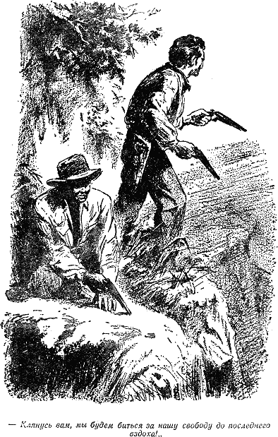 – Я прекрасно понимаю, что закон и власть на вашей стороне, – с горечью воскликнул Джордж. – Вы намереваетесь продать мою жену на новоорлеанском невольничьем рынке, моего сына посадить, как теленка, в загон, а мать Джима отошлете хозяину, который бил ее, издевался над ней, вымещая на старухе свою злобу, потому что не мог добраться до ее сына. Вы хотите, чтобы мы с Джимом покорились тем, кого вы называете нашими господами, и претерпели от них муки. Что ж, таков закон! Но попробуйте возьмите нас! Мы не признаем ваших законов, мы отказываемся от вашей страны. Мы свободные люди и будем отстаивать свою свободу до последней капли крови!