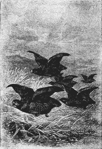 Куропатка серая. В конце июня в средних и южных губерниях после трехнедельного насиживания — вывод молодых, число которых достигает иногда двадцати и более штук; дней через пять молодежь начинает уже порхать. В местах вывода выводки держатся около месяца, затем начинают посещать хлебные поля (если гнездо не в хлебах) и вообще отходят на кормежку довольно далеко от родных мест.