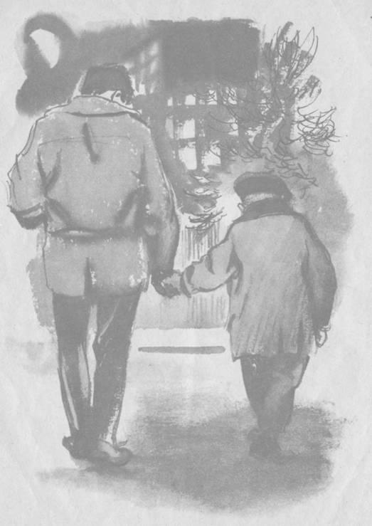 Он не стал меня уговаривать. Он прибавил шагу и крепко сжал мою руку. Мне стало даже больно. Он шёл очень быстро, и я еле-еле поспевал за ним. Отчего он шёл так быстро? Почему он не разговаривал со мной? Мне захотелось на него взглянуть. Я поднял голову. У него было очень серьёзное и грустное лицо.