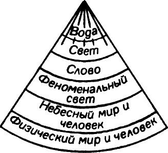 В самом деле, все наоборот: именно Изначальный Свет создает Слово, или Логоса, Который в Свою очередь создает физический свет. Чтобы доказать и иллюстрировать то, что он говорит, он приводит следующую фигуру: