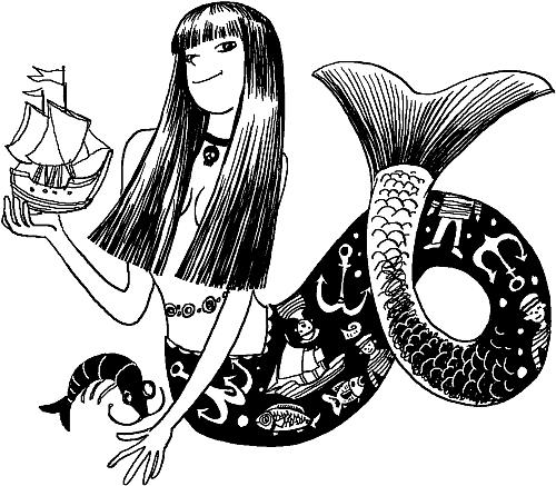 Я отрываюсь от своего листа и разглядываю рисунок Надин. Она изобразила себя в виде русалки, длинные черные волосы стыдливо прикрывают обнаженную грудь, на нефритово-зеленом хвосте выведены остроумные татуировки: моряки, якоря и корабли.