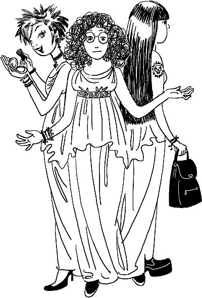 Судя по всему, это комплимент. Внезапно я прихожу в себя. Переворачиваю лист обратной стороной и за десять оставшихся минут урока быстренько набрасываю Гекату, состоящую из Магды, Надин и меня. Я в очках и с серьезным выражением лица, Магда кокетливо склонила голову набок, а Надин задумчиво смотрит вдаль. Магда и Надин радостно хихикают, а мистер Виндзор усмехается.