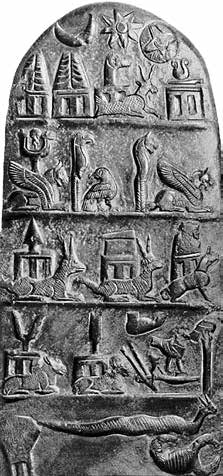 Кудурру (межевой камень) Мелишипака из Суз. Символы богов шумеро-аккадского пантеона. XII в. до н. э.