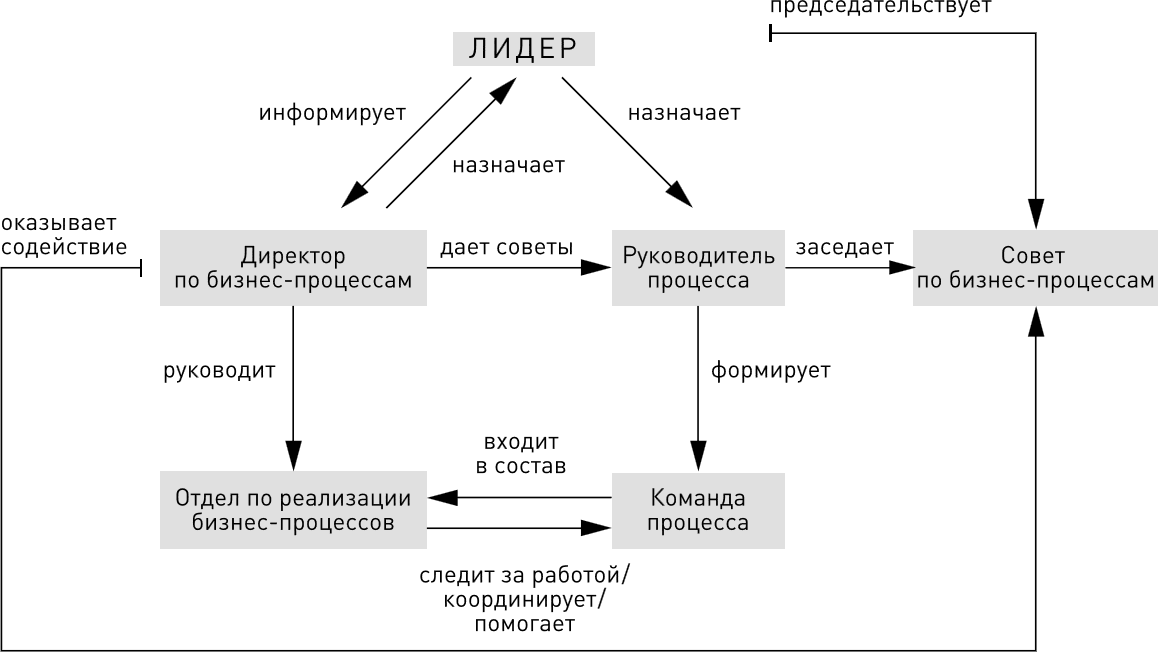 При внедрении процессов на предприятии могут возникнуть проблемы, с которыми не справятся ни директор по бизнес-процессам, ни отдел по реализации бизнес-процессов. Так бывает, к примеру, когда руководители разных процессов спорят о том, кому достанется талантливый специалист, или когда для повышения эффективности одного процесса требуется внести изменения в другой. Просто наладить обмен информацией здесь будет недостаточно. В подобных случаях каждая команда по проектированию старается улучшить свой процесс, а до того, как это повлияет на другие процессы, ей особого дела нет.
