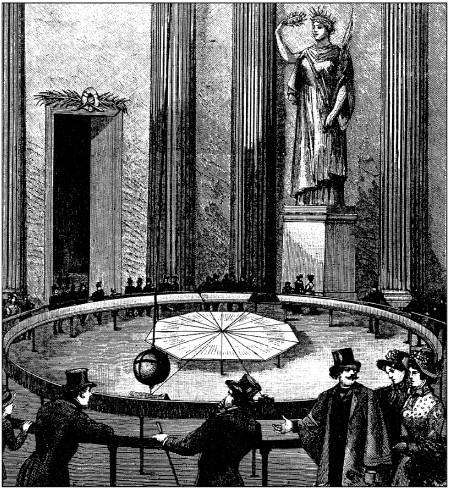 Один из таких маятников был представлен на парижской Всемирной выставке в 1855 году. Для этого события Фуко придумал хитроумное нововведение, с помощью которого при каждом качании диск маятника получал небольшой электромагнитный толчок, помогавший избежать убывания скорости. В том же году самый первый маятник установили в парижском Музее искусств и ремесел – учреждении, специально созданном как «хранилище новых и полезных изобретений». Маятник висит там и поныне.