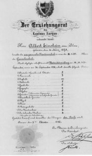 Аттестат Эйнштейна в Аарау (по шестибалльной системе)