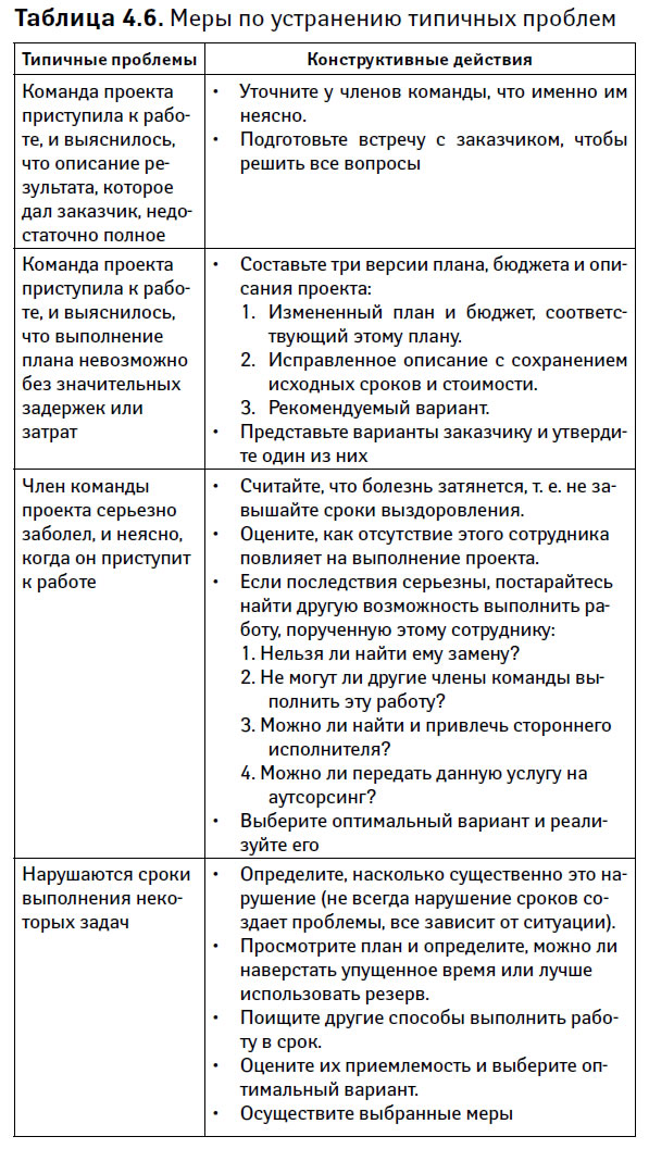 В табл. 4.6 приведены примеры типичных проблем и рассказано о мерах по их устранению.