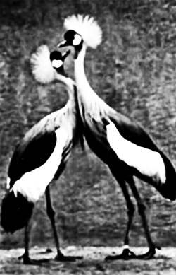 Объектом любви эти белые птицы избирали серого журавля, не встречая, естественно, никакого встречного чувства. В журавлиных питомниках, где запечатляется человек, на него и распространяет взрослая птица половой интерес. Стоящий рядом журавль не волнует ее совершенно…