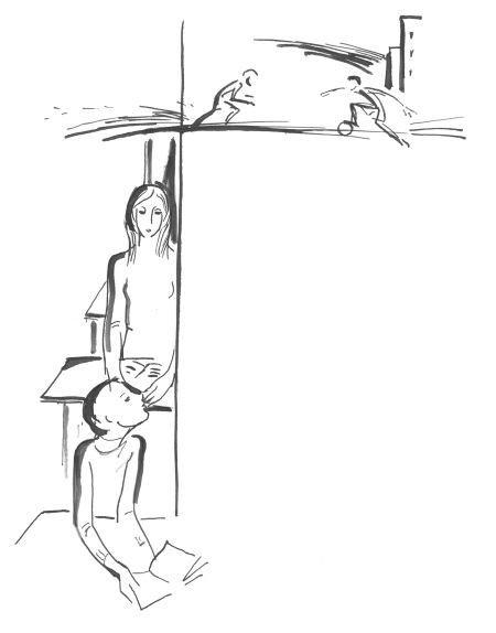 К туалету с табличкой «М» на двери. Чтобы спрятаться за этой дверью от всех женщин мира.