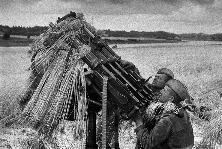 Зенитный пулемётный расчёт младшего сержанта Игната Недосекова в районе переправы через реку Неман. Фото М. Савина, 1945 год