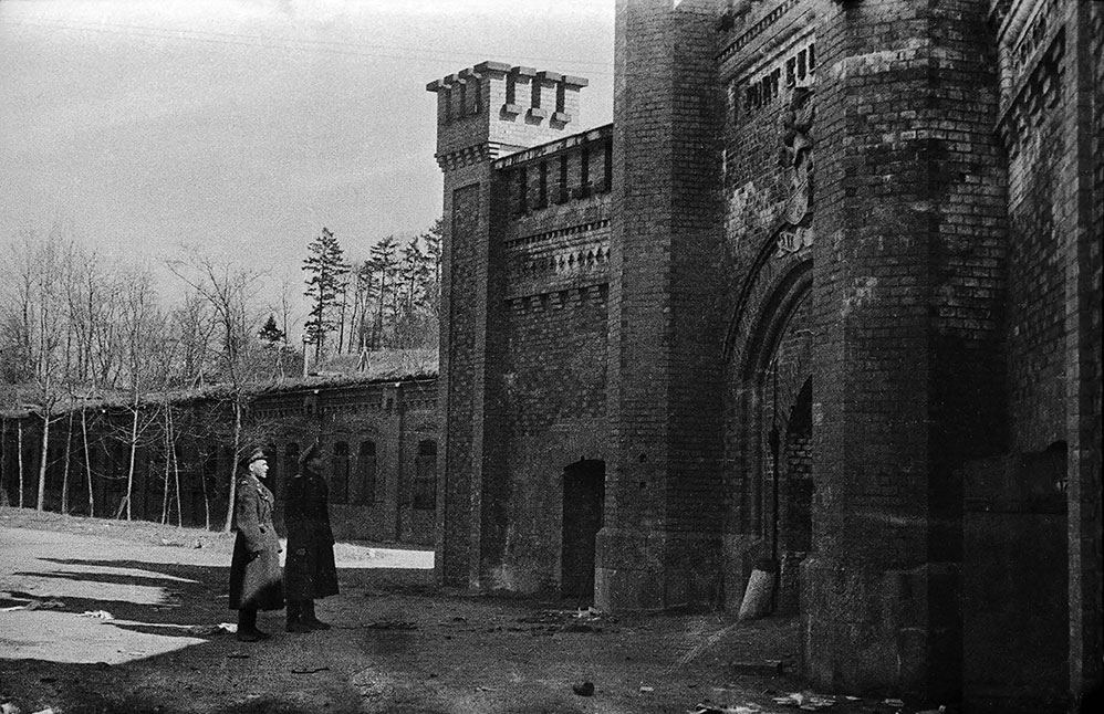 Советские офицеры осматривают форт № 12 «Ойленбург» («Eulenburg») недалеко от Кёнигсберга. Фото М. Савина, апрель 1945 года