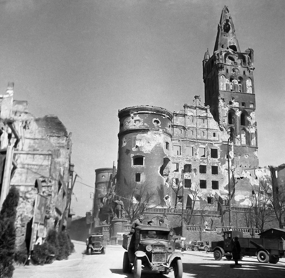 Послевоенный Кёнигсберг. Вид на площадь Кайзер-Вильгельмплац и южное крыло замка. Фото М. Савина, 1945 год
