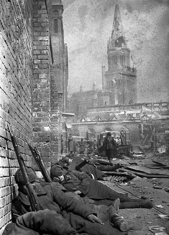 Советские солдаты отдыхают после боёв на улицах взятого штурмом Кёнигсберга. Фото М. Савина, апрель 1945 года