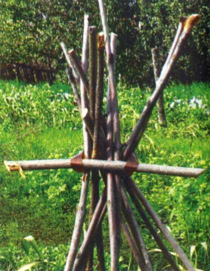 «Пустоты» внутри вигвама можно заполнить тенелюбивыми растениями, например, поздними огурцами. Для доступа к внутренности вигвама надо с северной стороны «сделать дверь», т. е. оставить, примерно, полметра между основаниями самых северных хворостин.