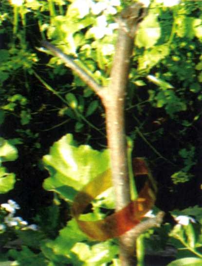 Фото 45. Поддержка растения кольцом, накинутым на растение и рядом стоящую хворостину