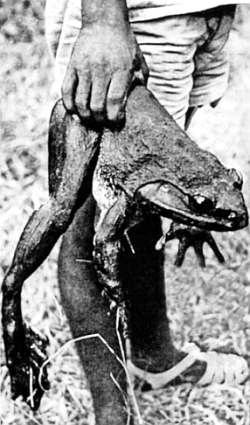 И в заключение — о лягушке-гиганте. Водится она в Африке, в Камеруне, в полосе леса вдоль одной из тропических рек. Встречается только тут, и нигде больше (эндемик).