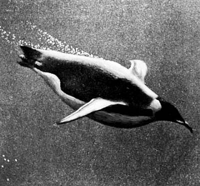 Помимо уже названных приспособлений к экстремальным условиям, следует еще сказать: кровеносные сосуды — артериальные и венозные, — пронизывающие почти лишенные пуха ласты, тесно переплетаются.