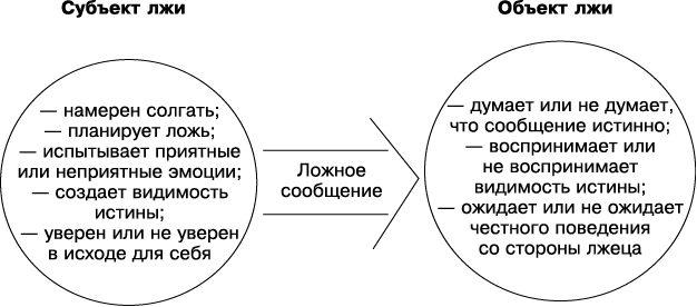 В психологии существуют такие понятия, как реципиент (воспринимающий) и индуктор (производящий), мы будем использовать другую терминологию – лжец и жертва обмана, так как в обмане чаще всего принимают участие два человека: субъект и объект лжи.