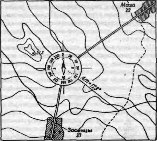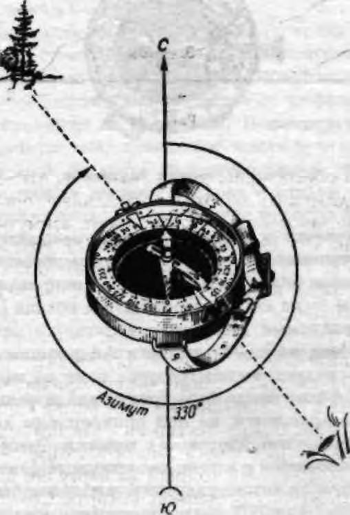заданному азимуту. Затем идут в этом направлении, ведя