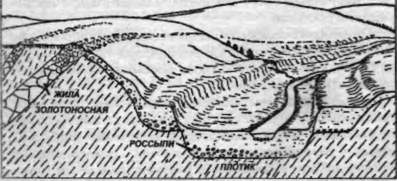 Рис. 17. Золотоносные россыпи равнинной реки,