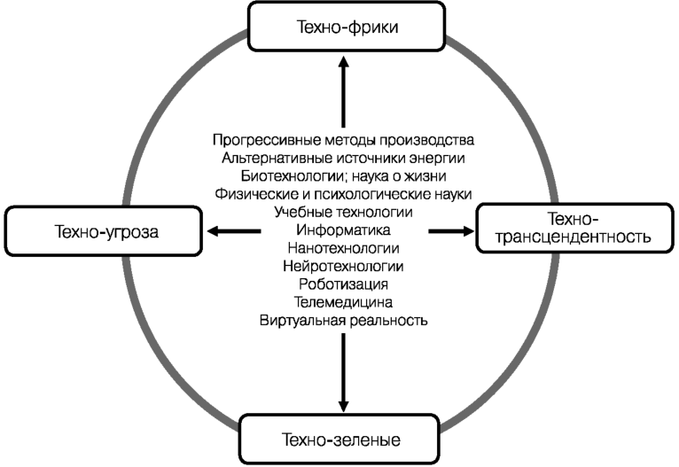 На рис. 6 и в следующем разделе мы выделим четыре основные точки зрения общества на науку и технологии.