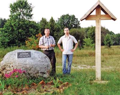 Николай Старченко и ого сын Алексей. Снимок у памятного теперь камня.