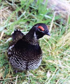 На этом снимке — самец дикуши. Он темно-бурый с нарядной россыпью белых пятен по низу и по кончикам хвостовых перьев. Шея и голова его черные с буроватой оторочкой воротника. Ярко-красные брови, поднятый воротник и распущенные перья на шее свидетельствуют: снимок сделан в брачную пору — петушок демонстрирует яркий наряд подружке, окрашенной более скромно, в серые с буроватым узором тона. О том, как и где был сделан портрет жениха, расскажем позже, а сейчас посмотрим, где и как живет эта птица.